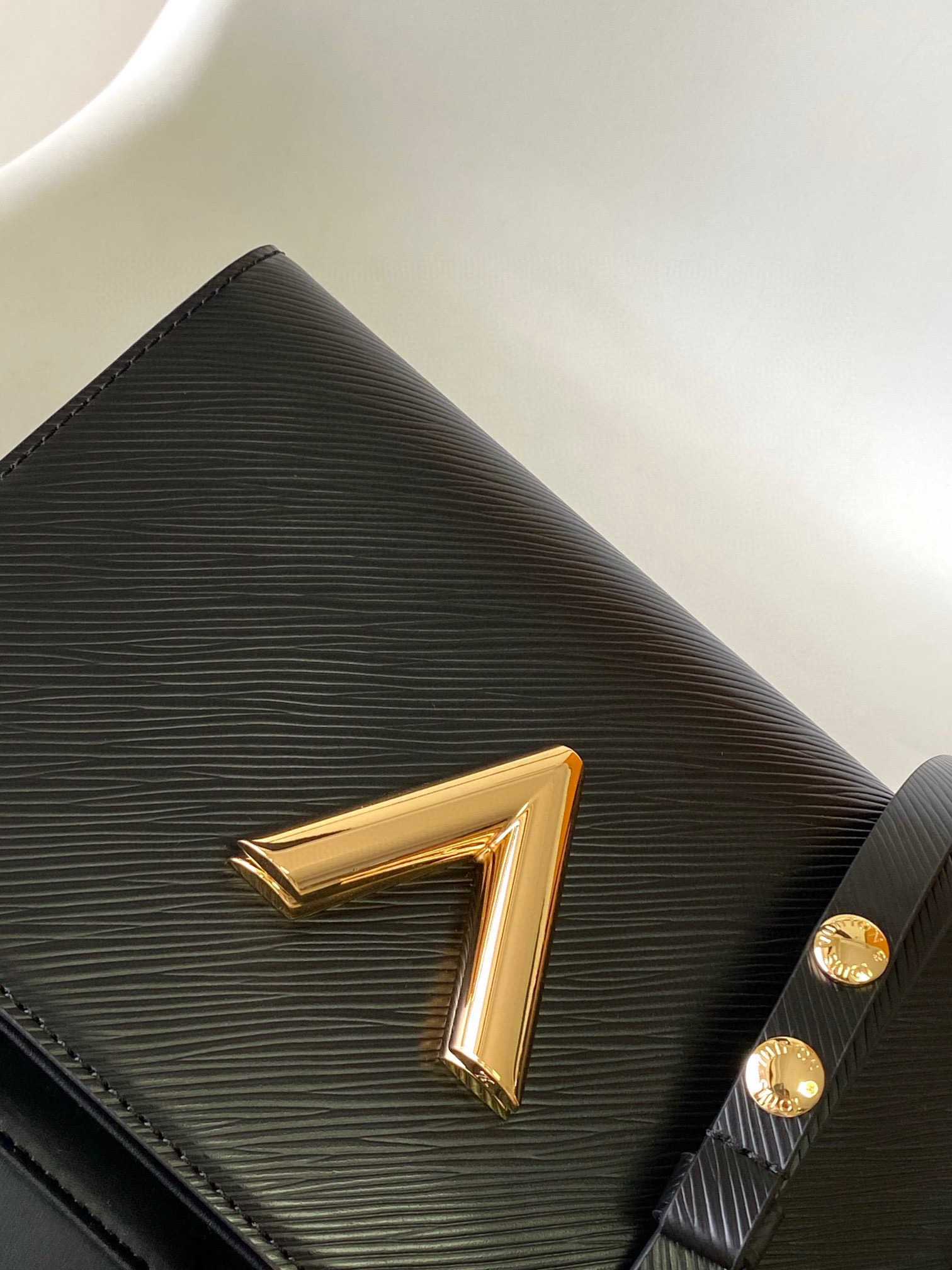 The Twist MM combines elegant Epi leather with versatile functionality, featuring a braided leather chain and removable strap for chic carry options.