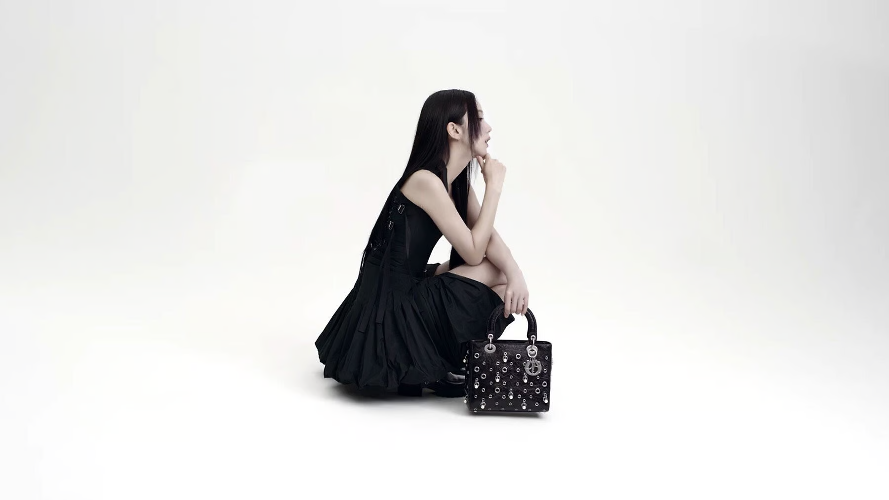 Stylish guest holding a bold mini bag